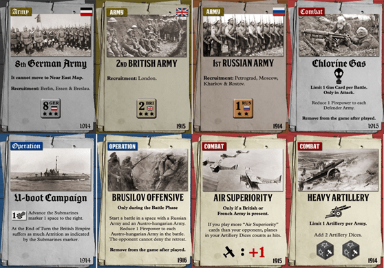 New designer blood is a good thing. And GMT Games seems to attract some of the best designers in the business. Such is the case this month with the announcement of Iron Storm: The First World War, 1914-1918. This game appears to be a fresh take on a very gamed subject in The Great War. I love the look of the game, the cards used and the concepts behind them as the cards will change over the course of the game as cards will be added to the players’ hand that have less utility and lessened effects in the game. This concept is designed to model the effects of attrition and I cannot wait to see how it does that.