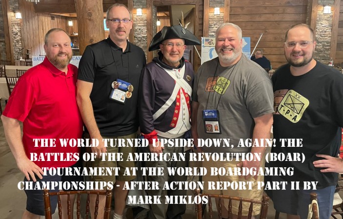 Part II of the extensive AAR provided by Mark Miklos of the battle for supremacy at the Battles of the American Revolution (BoAR) Series tournament at the World Boardgaming Championships!