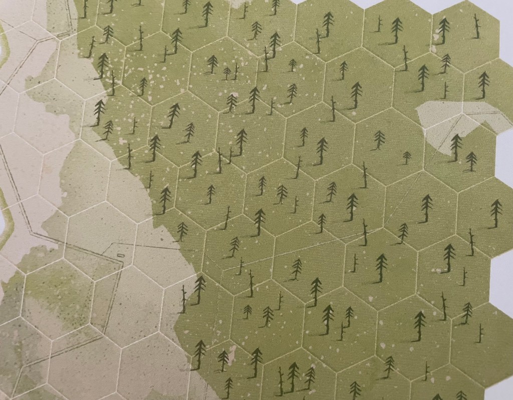 The Woods terrain is also very interesting as it is shown with trees growing up through the spaces. But if you look closely, these are not the type of trees that you will see in the middle of a dense and rich forest, but are more the type of trees that you would come to find in a flood plain. The trees are definitely not healthy and you can see that in the art style chosen to depict them. Floodplain causes trees over time to die out as they cannot obtain the nutrients they need from the soil as it is waterlogged and loses these vital ingredients. Certain species though are accustomed to wet conditions but the trees here are not those type of trees and it shows in their haggard depiction.