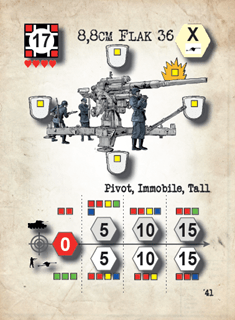 Wolfgang: The best part of this expansion is that there is always a defensive opportunity for players to react to any attack resulting from a TAS/OAS card. The non-active player will always have an opportunity to interrupt the TAS before it attacks if they have an unactivated unit with a unit class of AA, which stands for Anti-Aircraft, and this unit is located within the range of this target hex. Here is a representative AA class unit.