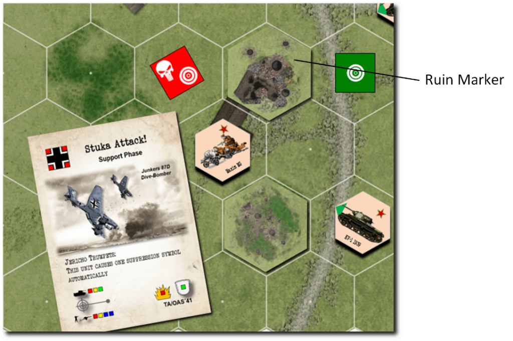 - OAS attacks (even when not firing smoke) automatically cause one smoke marker to be placed on the target hex (simulating a mixture of smoke and dust)