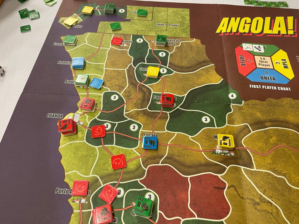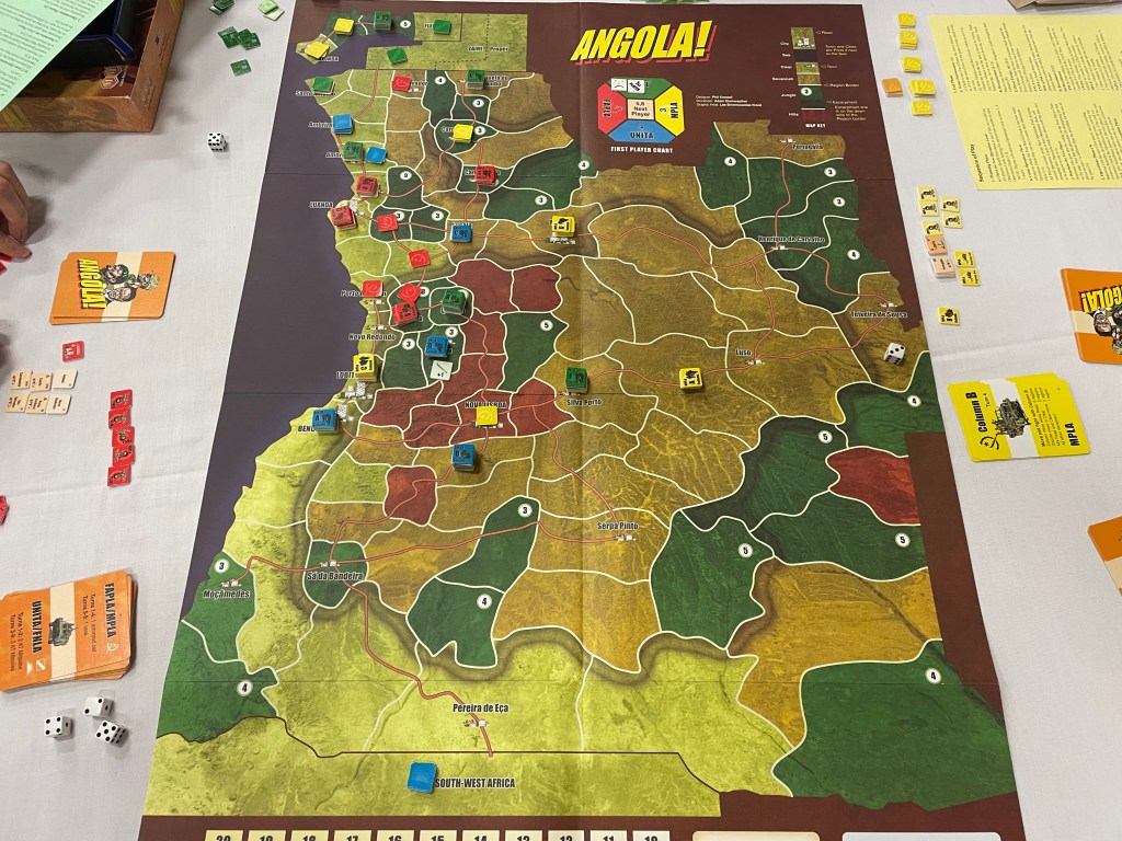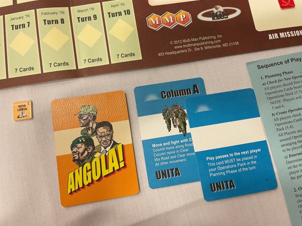 There are certain wargames out there that become somewhat of a cult classic after a few decades. Initially, these type of games are not widely released and most people never get to experience them and then they go out of print. In fact, the limited availability is sometimes the cause of the cult status. Over the years, people will play and discover these jewels and speak fondly of them to others and it begins to generate a nostalgic almost preternatural hype. Hype is normally seen as a bad thing camouflaging a poor design or hiding the fact that it doesn’t do something well. But more often than not, people feel strongly about these games because they are good…but were never really given a chance because you just couldn’t find a copy to play. Such a game is Angola!, which was originally published in limited quantities by the Ragnar Brothers in 1988, and then picked up by Multi-Man Publishing later. I have heard lots of comments over the past 5 years or so and have seen many posts on social media about it. Heck, the game is ranked #82 on BGG in the War category if that tells you anything. But, I didn’t get the chance to discover this 20+ year old gem until recently while attending WBC.