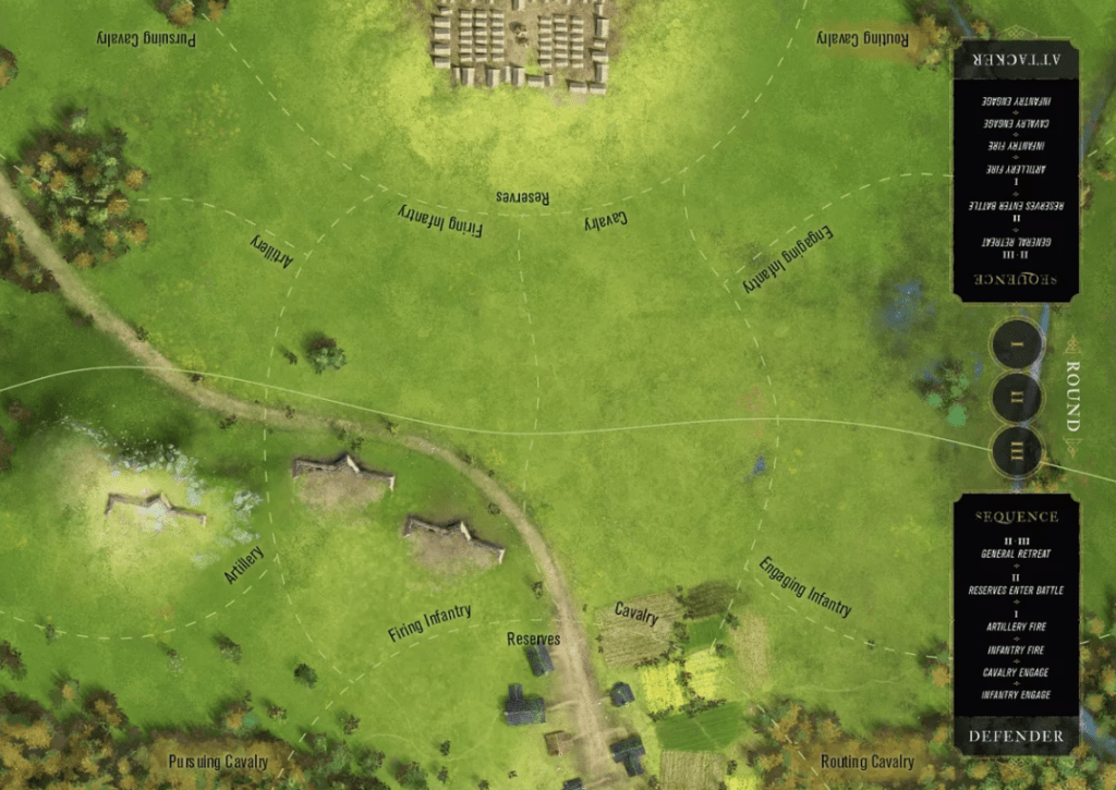 The Battle Board is a separate piece from the main board and is used during combat. As you look at the Battle Board you will see that there are areas for each of the defending and attacking sides’ units and these are divided up by type to aid in the process of going through the battle process. I love the intricate details shown on the Battle Board including some elements of terrain, such as copse of trees, various fortifications, a lower, swampy area and the road cutting through the board from right to left. I also like the different sides situation as the defender side is shown with a town in the background and the attacker has an organized military encampment with tents setup for the invading army. The level of detail used in the board and its ancillary aids is just phenomenal and truly creates the appropriate feel for the game.