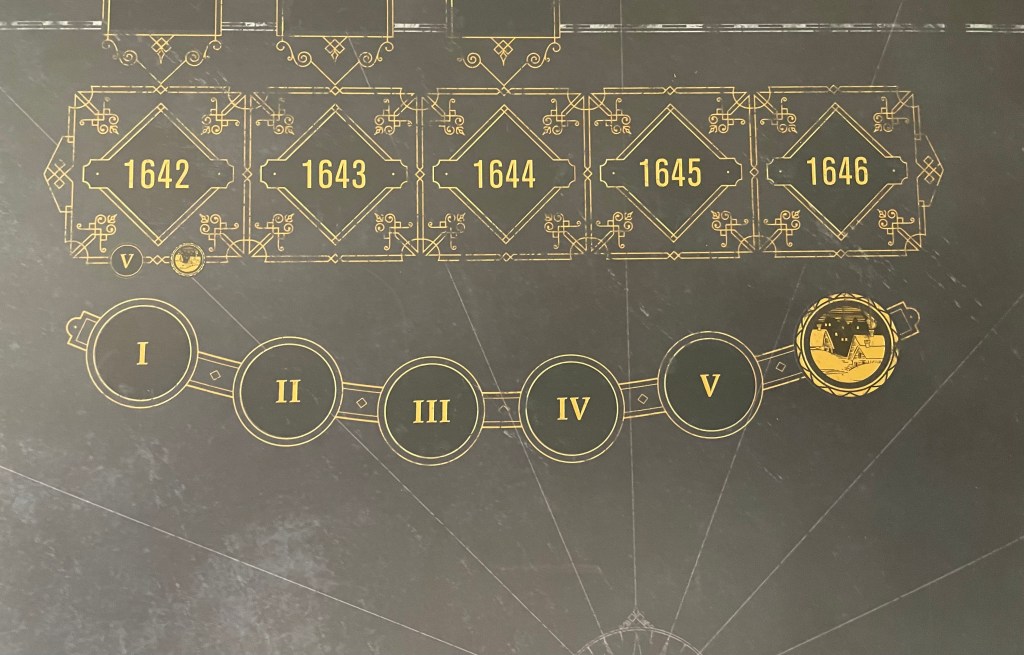 The Year and Turn Track are very well done and have the antiquity feel of writing style that was popular in this age adorning the various boxes and circles used to mark the passage of time. The lower track marks the various turns in a single year as there are 6, including the final space being a Winter Turn.