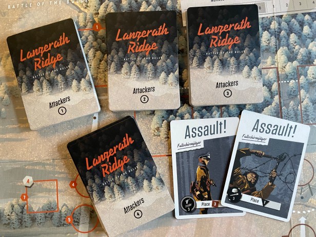 Lanzerath Ridge is divided into four distinct Attack Periods, each of which is represented by a deck of Attacker Cards. These four Attack Periods are based on how the battle unfolded historically as the German attackers probed the defensive line time and time again looking for a weakness to exploit.