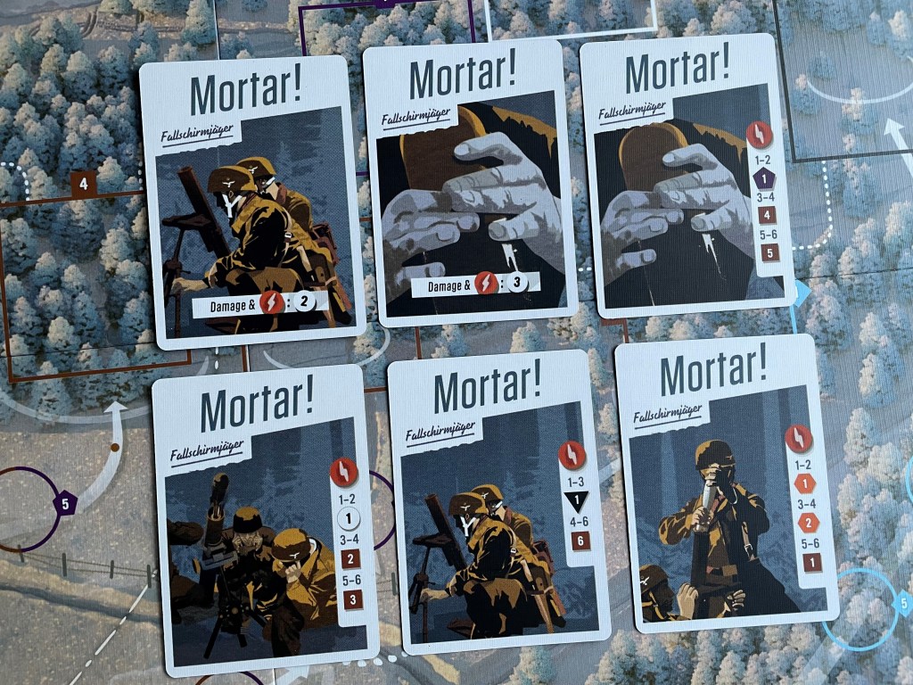 Mortars! – these cards don’t show up until after Attack Period 1 but take a shot at all units within a randomly determined Defender Combat Position.