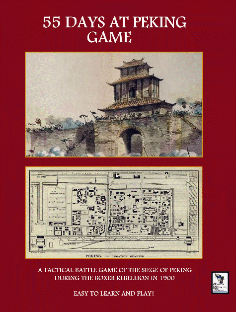 55 Days at Peking is a low to moderate complexity tactical game on the Chinese siege of the Legations at Peking in 1900 as a part of the infamous Boxer Rebellion. The game takes about 90 minutes to play. One player commands the Chinese forces and the other player commands the various Allied forces defending the Legations. Cards vary the game play.