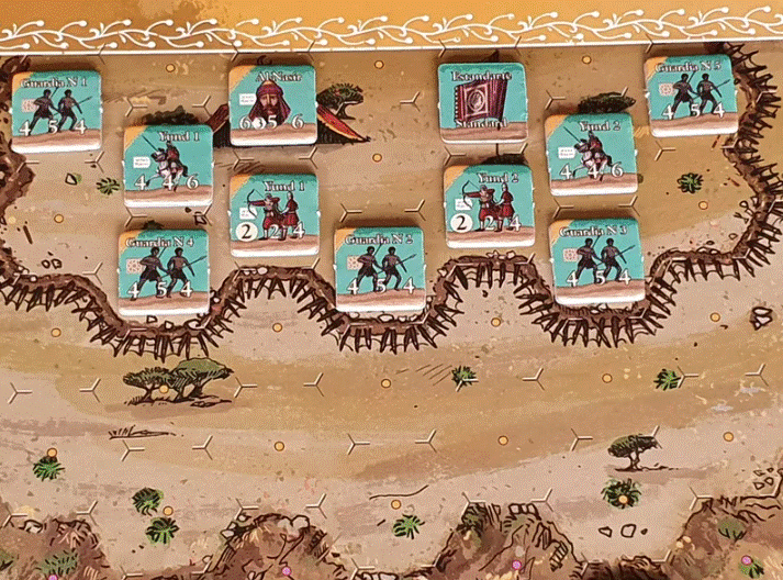Each player has 5 formations and a deck of tactical cards and a deck of strategic cards. During his turn, the player will receive tactical and strategic cards and will activate 3 of his formations, each in a different impulse and alternating with his opponent. In each impulse you can play a tactical card, even in the opponent’s impulse if the card is a reaction card. Additionally, during any moment of the turn, the player can play a strategic card.