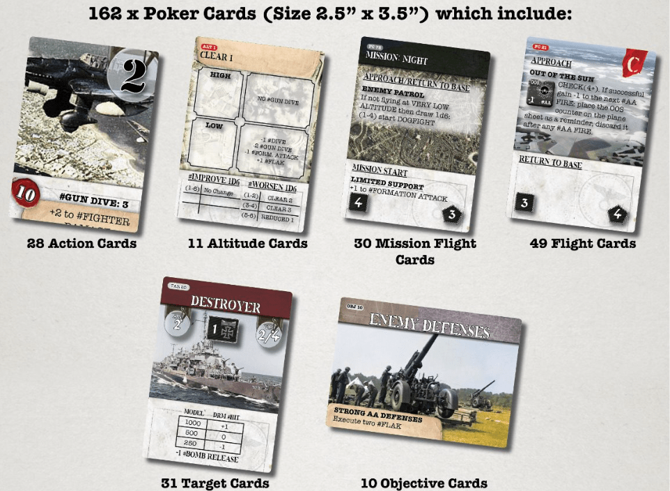 What makes Stuka Ace special is the brand-new game engine, built around what made the Stuka unique, the dive-bombing. This method of attack is very different from the standard bombing operated by other aircraft, and Ju 87 Stuka Ace fully reflects this uniqueness. This is the attack sequence in Ju 87 Stuka Ace: select the bomb release height, proceed with the dive, consider the current formation height and visibility, release the bombs at the set height and then execute the delicate pull phase. Each of these phases will be managed by making optimal use of the action cards in the player’s hand, but you must carefully plan your play since you don’t immediately draw a new card after playing it.
