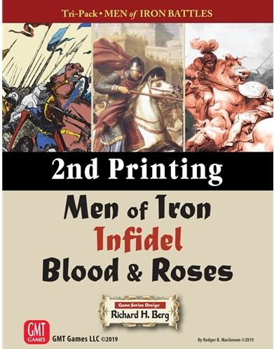 The Men of Iron Tri-Pack is a large box game that includes the first three games in the Men of Iron Series including Men of Iron, Infidel and Blood & Roses, plus the Battle of Agincourt from C3i Magazine #22. This box is huge and heavy and is probably one of the greatest values in wargaming as there are three games and the box is packed full to the brim with counters, maps and player aids.