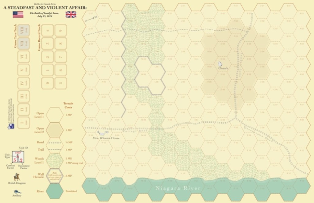 A Steadfast and Violent Affair: The Battle of Lundy’s Lane, July 25, 1814 is an introductory level wargame. It is part of the Battles for Canada Series of games that portray famous battles fought for control of that country during the War of 1812.