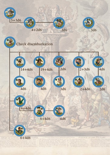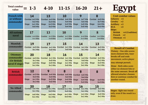To reflect the asymmetric nature of the combats, generally the French require lower total scores to inflict hits and when they do successfully score hits often they score more element hits per successful dice than the Mamluk’s or Ottomans.