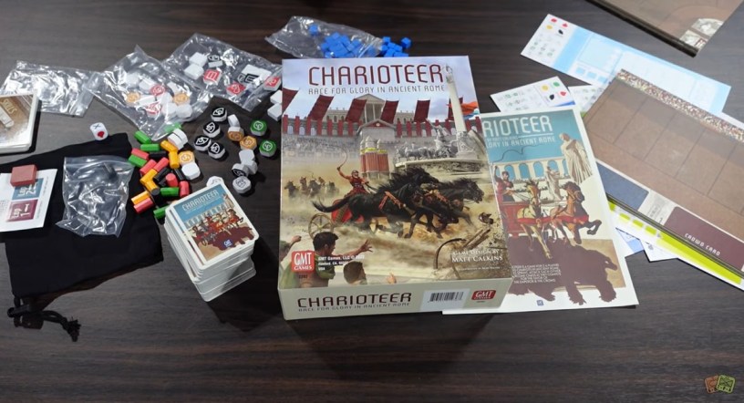 Charioteer is a new game from the designer of Sekigahara: The Unification of Japan Matt Calkins. Like Matt’s previous games, Charioteer features simple rules, quick play, and novel mechanisms. Charioteer is a strategic racing game that plays in one hour. Each player controls a chariot in the Circus Maximus of ancient Rome. There’s lots of action, and it happens quickly, with simultaneous move selection.