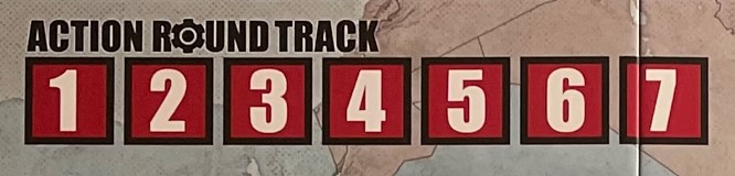 The Action Round Track just keeps track of whose play it is and what card each player is on. Nothing fancy but this is an aid in keeping things straights as sometimes cards require the play of a 2nd card along with it and it is easy to lose your place.