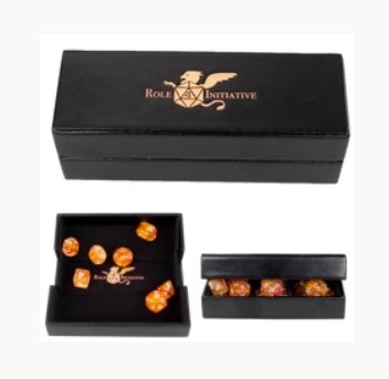 We continued to walk the Exhibitors Hall stopping in at lots of different dice retailers including Chessex, Crystal Caste and Metallic Dice Games who have rebranded as Fan Roll by Metallic Dice Games. I want to thank Crystal Caste for doing the Gen Con dice every year and we always pay $2.00 for ours because I want them to not lose money and stop doing them. I have about a dozen of them in my dice bag and always look forward to this. Our favorite dice retailer this year though was a new placed called Role 4 Initiative as we loved their diffusion dice sets. They have these very unique 4-sided dice which they call Arch’d4. We also purchased these very interesting carrying cases that allow you to fit about 12 dice inside the leather box along with a pencil/pen and your miniature for roleplaying. The box also assembles itself into an impromptu dice tray, which is really very cool!
