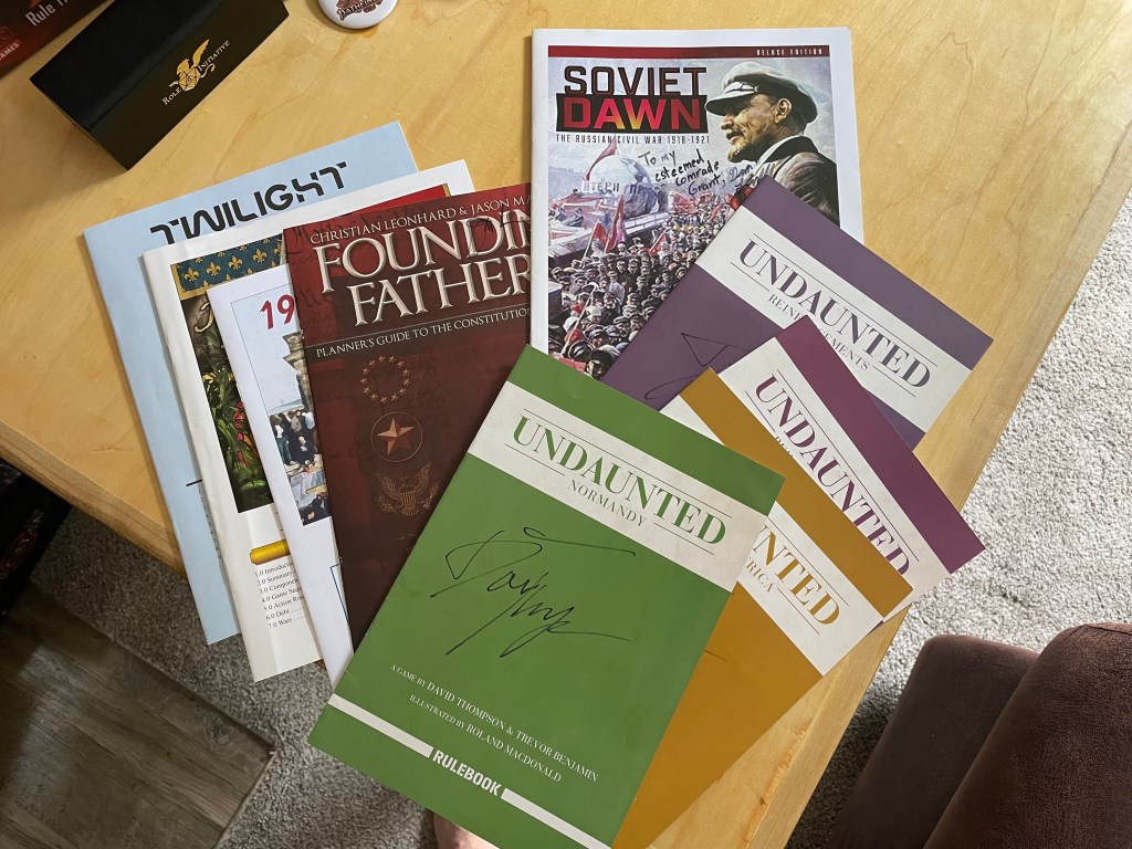 One final thing. We brought several copies of rulebooks to be signed by Darin, Jason and David Thompson as you can see below. I also had rulebooks for Oath from Leder Games and John Company 2nd Edition from Wehrlegig Games to be signed by Cole Wehrle and 51st State Ultimate Edition from Portal Games to be signed by Ignacy Trzewiczek but unfortunately we never connected with them. Maybe next time!