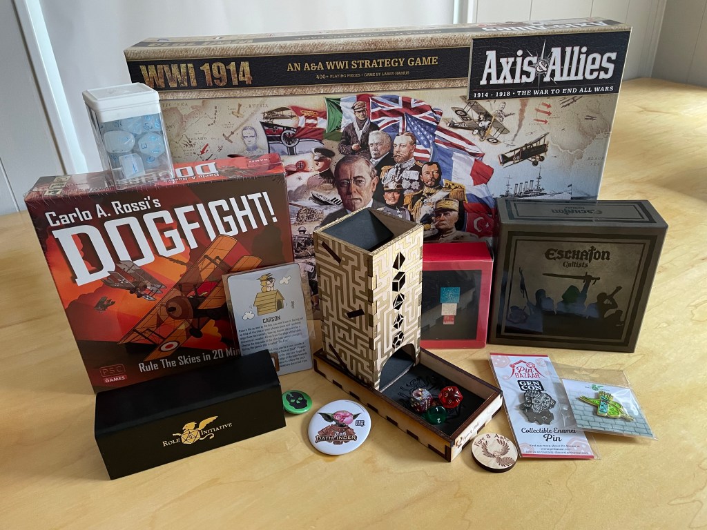 I then picked up several games including Dogfight! from PSC Games (along with a not-Snoopy promo card), Eschaton Cultist Meeples from Dark Archon Games to pimp out my copy of the base game that we have played and absolutely loved and a new edition of Axis & Allies WWI 1914 from Renegade Games who has recently purchased the license for A&A from Hasbro.