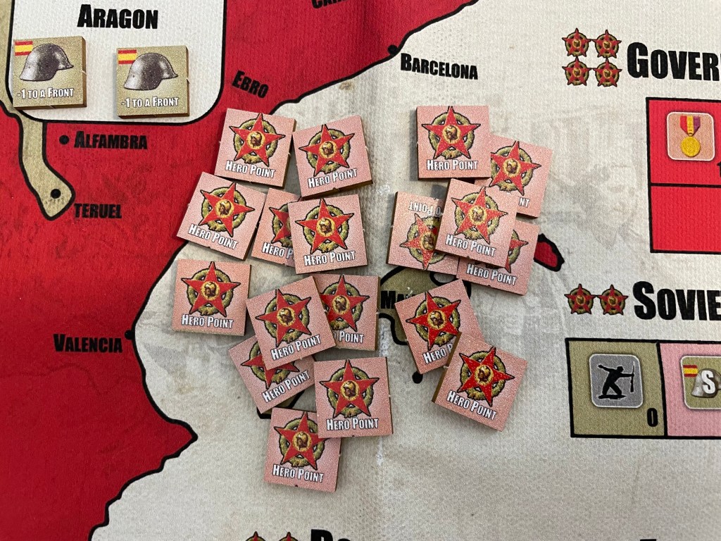 One of the things that I really like about this design is that there are many different and varied mechanics used that uses history as a guide to make the game an interesting experience but also adds some elements that make the game a game. One of those mechanics is the concept of Hero Points. Hero points are a type of currency that players can earn by performing heroic acts on the various Fronts in the game. There are actually several ways to earn these points and we will take a look at the those ways.