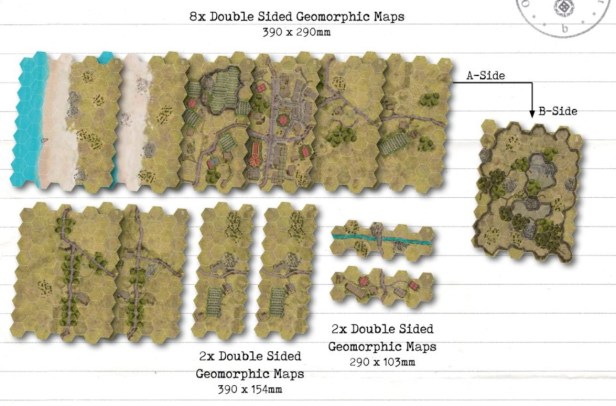 Wolfgang: The map tiles are geomorphic so that they can be put together in a number of ways, which adds variety to the different set ups we can make available to players. They are also deliberately designed so they can be interlocked. This has the advantage that you have continuous terrain at the map edges. In wargames with straight rectangular maps, there are hexes cut in half. Because of these half hexes, it can make the placement of units physically difficult or just confusing. How often have you seen threads on BGG or Consimworld where people ask if half hexes can be used? The half hexes can also, (in the sense of LOS), create free corridors to fire down. We wanted to prevent this and therefore have only whole hexes at the edges with the possibility of mapping the corresponding terrain there.
