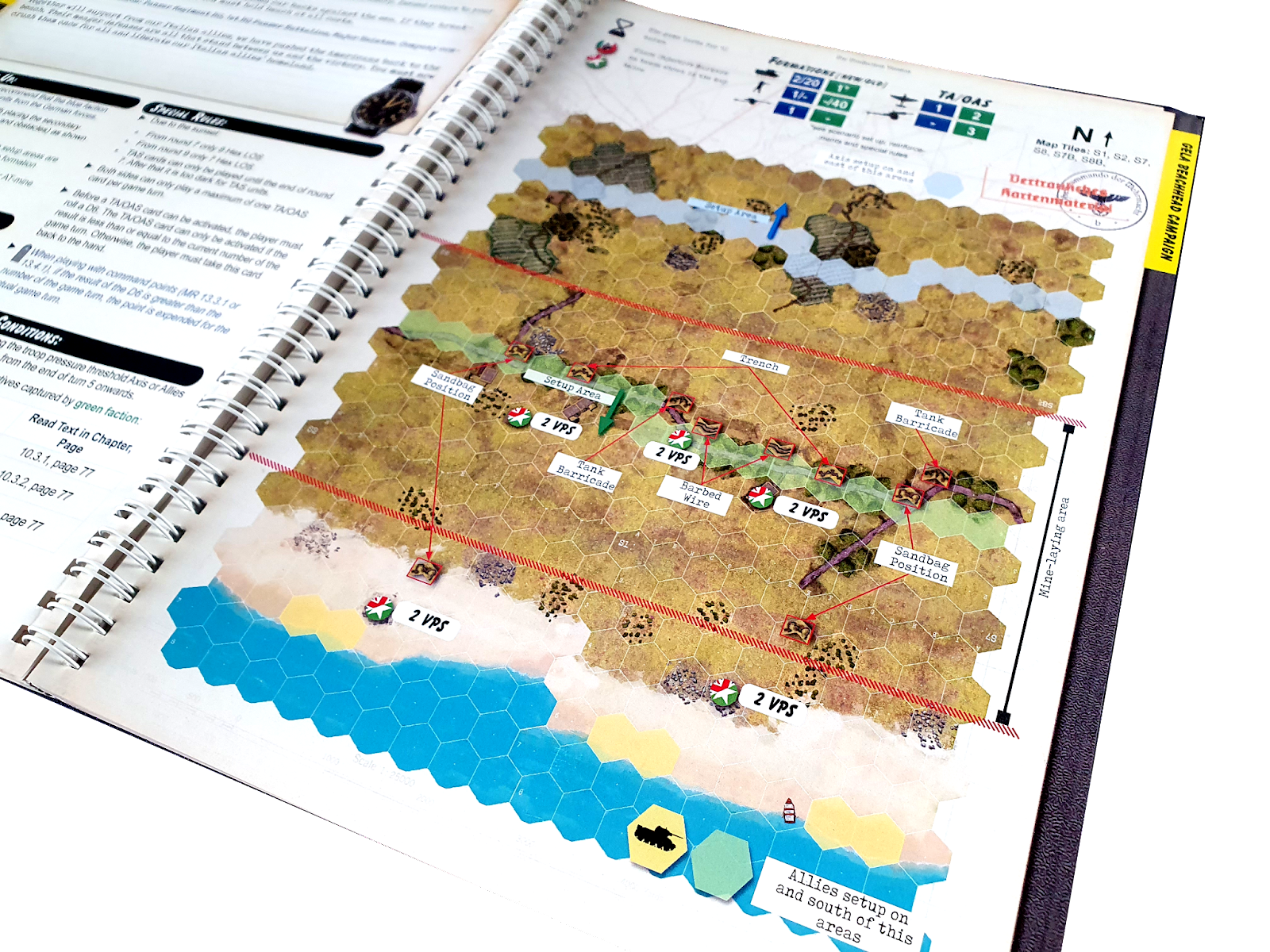 Wolfgang: There are a total of 40 different scenarios in Sicily 43, and even more with the additional Units & Artwork Book add-on. 28 of them are part of the Gela Beachhead Campaign, but can also be played as individual scenarios.