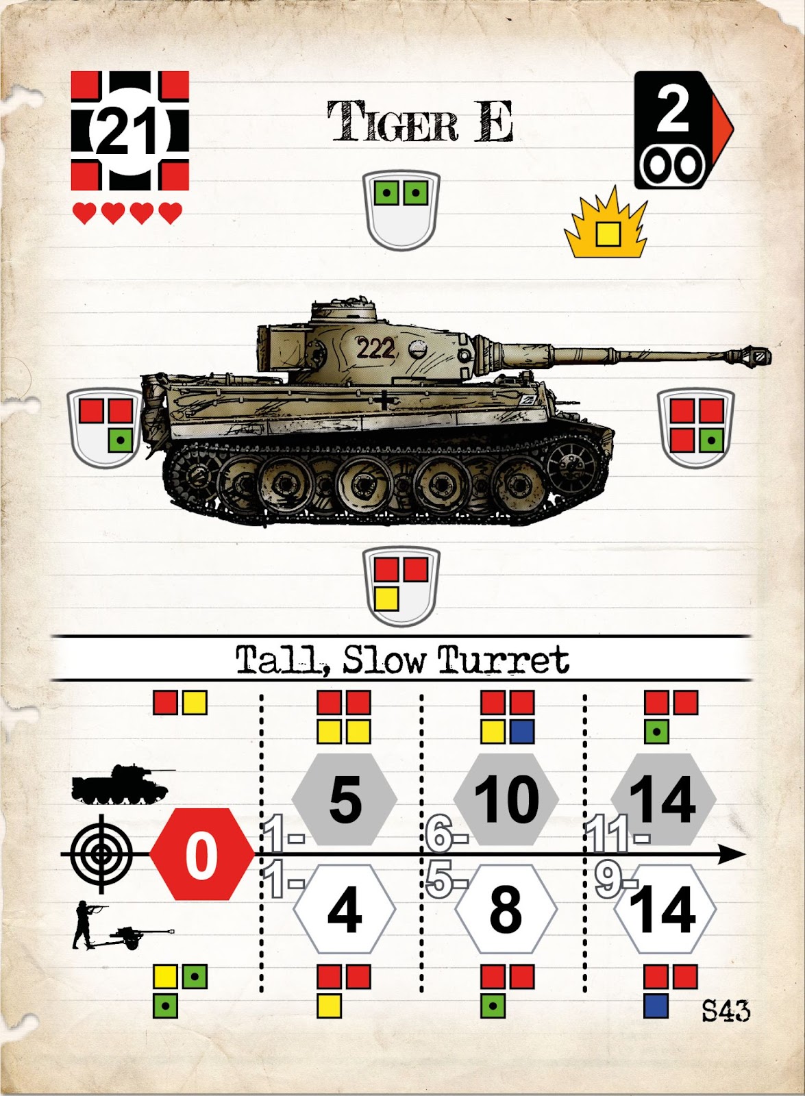Each scenario specifies what type of Formation Cards the players are allowed to have and their setup. These Formation Cards are drawn randomly, to simulate that as a military leader (e.g. company commander) you cannot always choose which units you have to command. The Formation Cards also speed up the game because you don’t have to choose every single unit and check with the point values to check whether the game is balanced. I have already explained the Unit Cards themselves. Each type of unit listed on the Formation Card will have an equivalent Unit Card. Players will only need one Unit Card for each type of unit. Its purpose is to provide all the necessary information that the players need to know about their unit counters on the map tiles in order to play the game. This includes how they move and attack, how well protected they are when under fire, their special abilities and any attributes they have, good and bad.