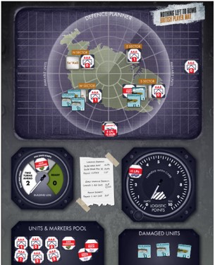 The AAA counters display the RAF roundel on their back (as they stay concealed until the Raid in their sector pushes the attack) and the AAA strength on the front side.