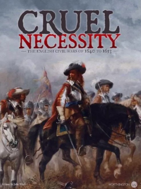 Cruel Necessity is a solitaire game simulating the military, political, and religious struggles of the English Civil Wars (1640-53). Players will attempt to stop the advance of four armies bent on destroying Parliament and Puritanism, whom you represent. These armies will come at your hot and heavy and you will have to play smart and efficiently to be able to withstand the siege.