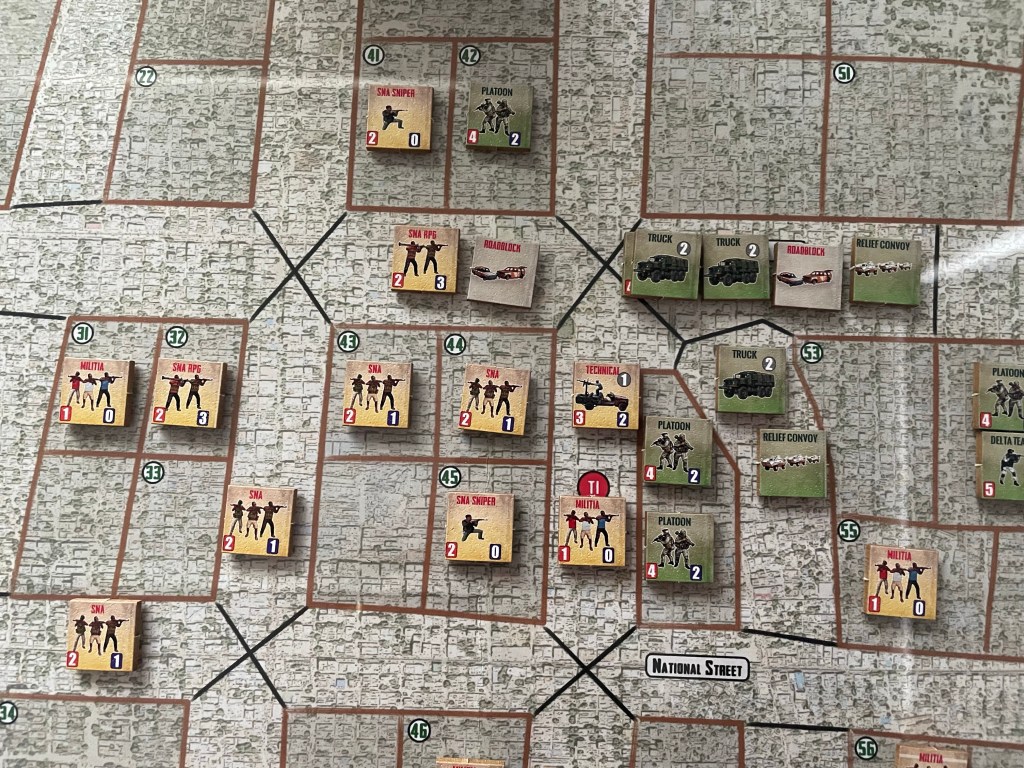 The game offers several scenarios of differing lengths and play times and is really very fun as it is chaotic and ever changing as the automated AI system dumps new Somali National Alliance forces in your path as you make your way to and from various objectives. The game also has very simple rules that allow you to jump in quickly and add complexity as you progress with the many different scenarios.