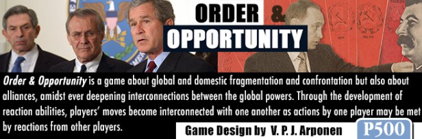 If you are interested in Order & Opportunity: Making of the Post-Cold War World Order, you can pre-order a copy for $55.00 from the GMT Games website at the following link: https://www.gmtgames.com/p-1027-order-opportunity.aspx