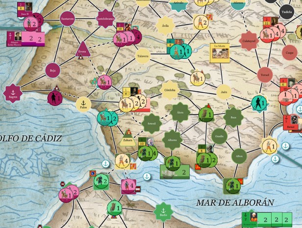 The game pits four different powers against each other including Spain, Portugal, the various Muslim Kingdoms and France. From the game page we read the following: