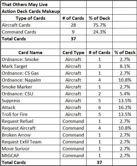 There are 3 separate and distinct decks of cards that are used for very specific purposes in That Others May Live. These include the Resolution Deck, Event Deck and Action Deck. In this Action Point, we will take a deeper look inside the Action Deck and discuss the utility of these cards.