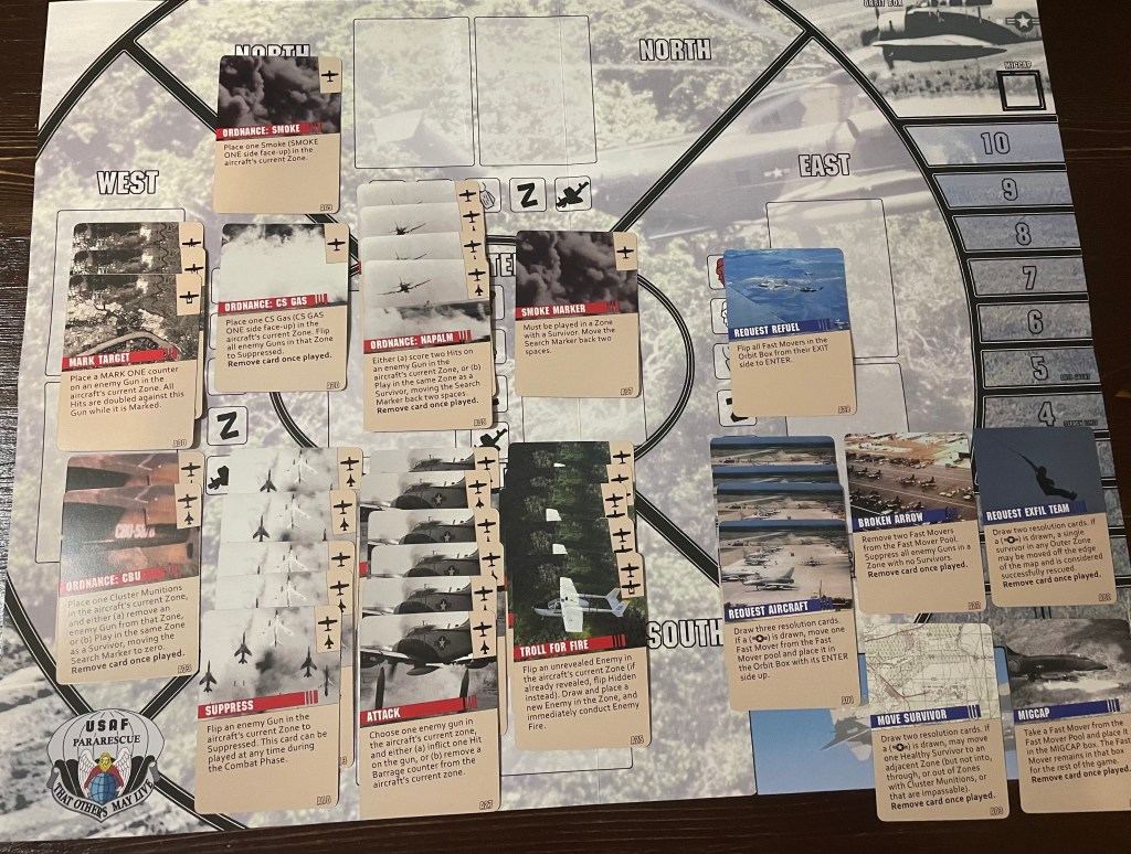 I really like a good unique solitaire wargame. I get to learn something about a subject I know little to nothing about and also get to play a new system. Recently, I started playing a very cool themed solitaire game called That Others May Live: Combat Search and Rescue – Vietnam from Hollandspiele and while I struggled with it at first, mainly with the concepts and how I was to go about doing what I was supposed to be doing, it has finally clicked and really grown on me. That Others May Live is a solitaire card-driven wargame that tackles the subject of Combat Search and Rescue missions during the Vietnam War. The player will take on the role of a CSAR commander tasked with the rescue of downed American aircrew in North Vietnam and Laos. The game is scenario based, and you can even play the scenarios in a mini-campaign. I really want to share this game with our readers and this is a perfect way to do that.