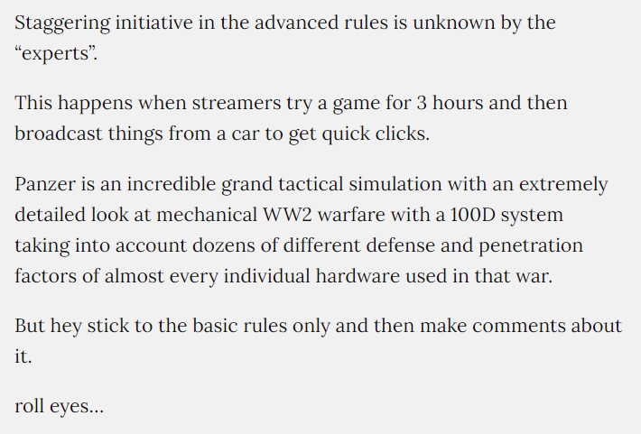 At this point in the post, you might be asking yourself what is the point here? Well, the point that I am trying to get out there for discussion is this. Even in the light of this admitted lack of deeper experience on our part, and the fact that we maybe didn’t grow up on some of the classics, I am trying to figure out why we get the occasional really negative comments about our thoughts, opinions and takes on wargames? Without being truly specific, and without giving away any names, I will give you a few examples.