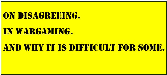 I am not sure that is what I thought this post would turn into but there it is. If we all walk away from this post with a better view on disagreeing over wargames, I will have accomplished what I set out to do here. But, I will continue doing what we do, sharing our thoughts and opinions out there and having civil discussions with all of you.