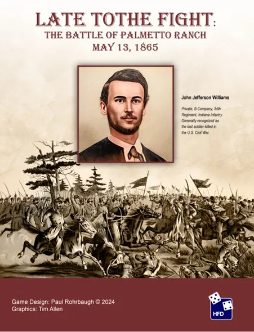 If you are interested in Late to the Fight: The Battle of Palmetto Ranch, May 13, 1865, you can order a copy for $22.95 from the High Flying Dice Games website at the following link: https://www.hfdgames.com/palmetto.html