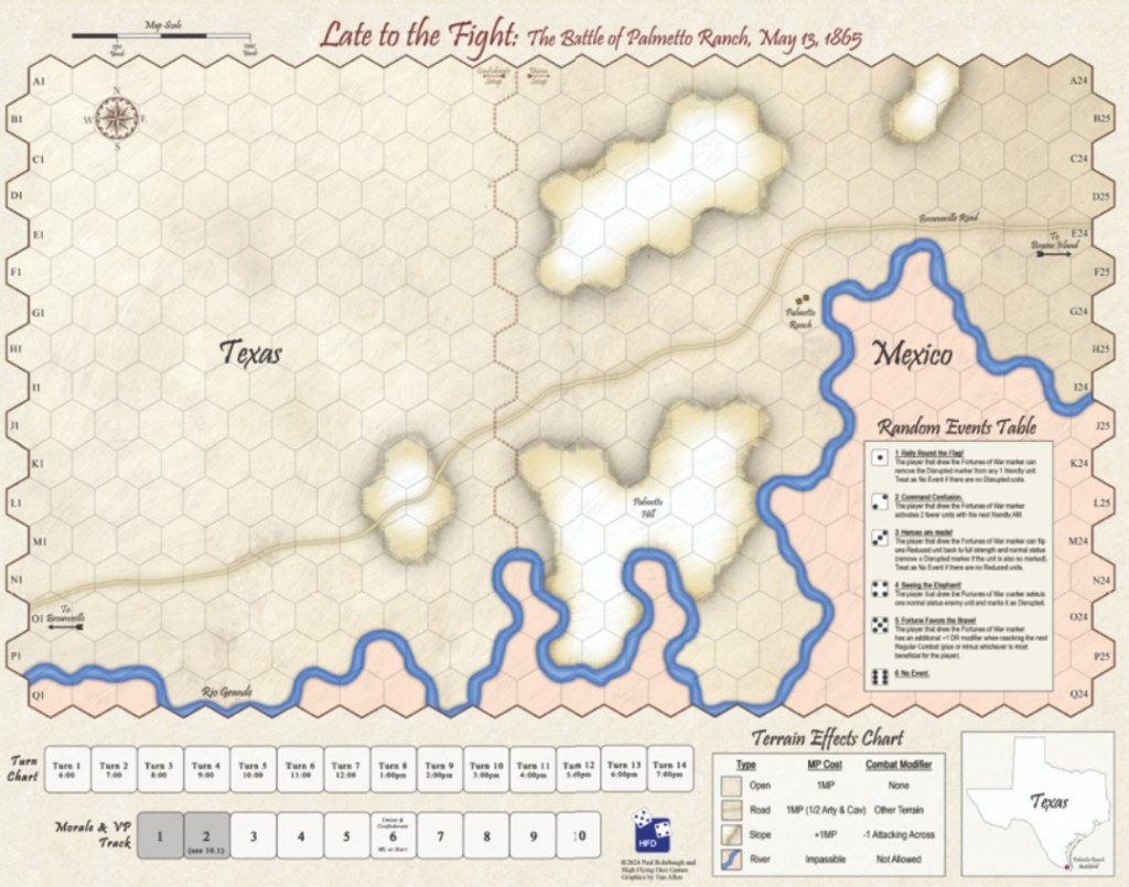 Their newest offering is called Late to the Fight: The Battle of Palmetto Ranch, May 13, 1865 and the game takes a look at the American Civil War Battle of Palmetto Ranch fought near Brownsville, Texas along the Rio Grande River.