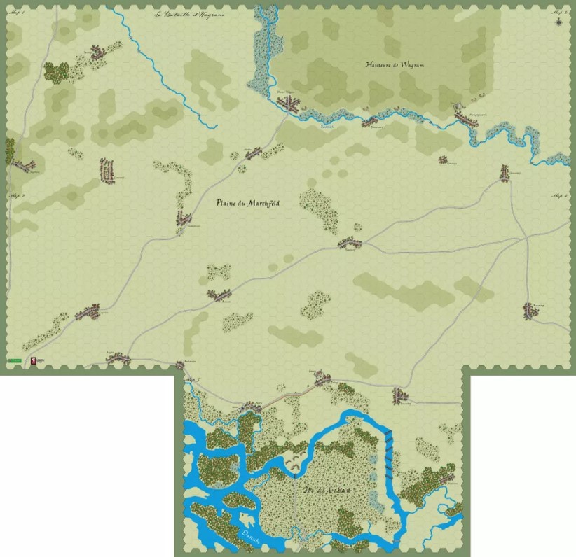 The battle of Wagram, July 5 and 6, 1809, is the second biggest battle of the Napoleonic era after Leipzig. It is the nadir of the Danube Campaign, starting in Bavaria in April and ending in July across the Danube. Around 180.000 French troops face 135.000 Austrians lead by the skilled Archduke Charles. After a bloody stalemate a month and a half before at Aspern-Essling (also included in the box as an experimental scenario), Wagram is a huge battle, a clear but not decisive French victory. Another battle, at Znaim a few days later, will be needed to finally push the Austrians to sue for peace.
