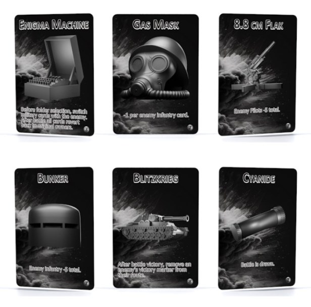 Bradley: Each of the characters starts with a unique Tactical Card, such as Churchill’s ‘Radar’ or Hitler’s ‘Blitzkrieg.’ These provide the player with a unique and very useful ability that is key to their strategy.