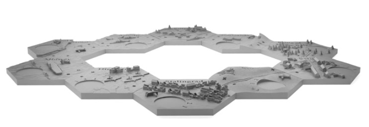 Bradley: A 3D board enhances the gaming experience, showcasing details like a desolate rubble town (Stalingrad) or a Japanese carrier under torpedo fire (Midway). Victory markers are inserted authentically much like staking a flag in the ground, and losing players place miniatures on battle locations during rebuild phases.