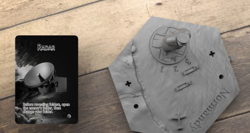 Bradley: There are 16 tactical cards which can be purchased and used to manipulate gameplay such as a ‘Medic’ to return lost military cards, a ‘Cyanide Pill’ to force a draw, or ‘Operation Fortitude’ where a team member fights the battle in your place.