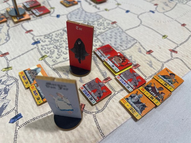 One thing that I do love is a good fantasy wargame. I have not played that many of them but those that I have played are always a blast! Games such as Titan from The Avalon Hill Game Company, Wizard Kings from Columbia Games and War of the Ring from Ares Games are just special games that merge two of my loves in wargaming and fantasy worlds. Last year, I came to learn that Hermann Luttmann was designing such a game for Blue Panther called The Struggle for Zorn: The Red Blight. As you know, Hermann is a very prolific designer and frankly has designed a few of my most favorite games including In Magnificent Style: Pickett’s ChargeDawn of the Zeds, At Any Cost: Metz 1870 and A Most Fearful Sacrifice among others. His games are always fun, well designed and very playable. The Struggle for Zorn: The Red Blight is marketed as a semi-cooperative fantasy wargame and definitely had my attention from the first mention of the game. Recently, we were able to get a play in of the game with Hermann Luttmann while attending Buckeye Game Fest and I really had a good time experiencing what he was trying to show. In this First Impressions post, I want to show what I really liked about the game and how its narrative is wound into the very fabric of the game and creates a very satisfying experience that puts this one up there in my esteem with a few of the other games that I have mentioned.