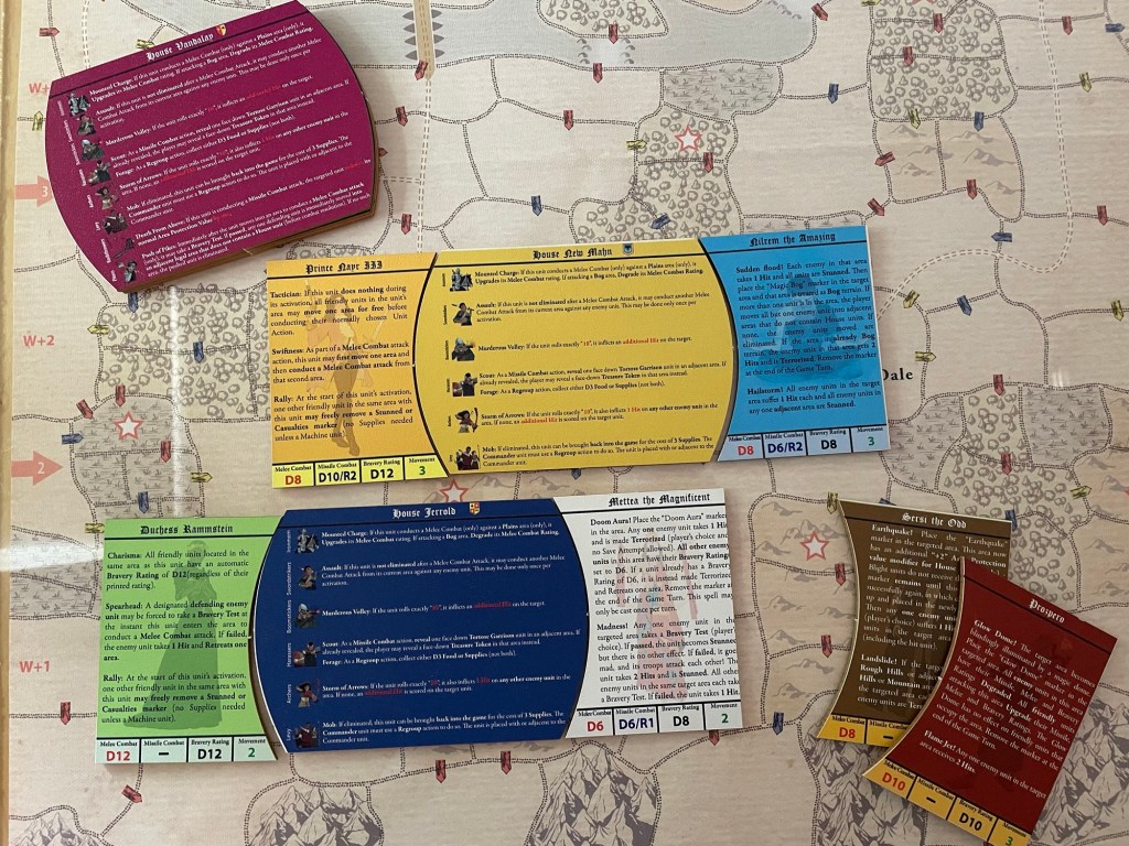 In discussions with Hermann, he really emphasized to me that the main goal was to provide a solid multiplayer experience, with the semi-cooperative play dynamic, while still also offering a legitimate fantasy wargame narrative at the same time. He really wanted the mechanics to create the theme and then bring them together to establish a cohesive experience. After playing the first time, I found the game play to be fairly straightforward, with very clean rules and a good outline of how things work, but also that created a really meaty and amazingly rich experience with tons of player interaction and decisions about how to best play the game. The wargame part of the whole affair was also very good and felt very tactical with the different units and their abilities as well as how movement and the map worked together. My final comment will be that the game establishes a very good fantasy setting that allows for the players to create a memorable narrative as they fight against the relentless and persistent forces of The Red Blight. I also really like the variety as well as you can play one of the Houses but with a different Commander or Magic User each game that will create its own unique experience.