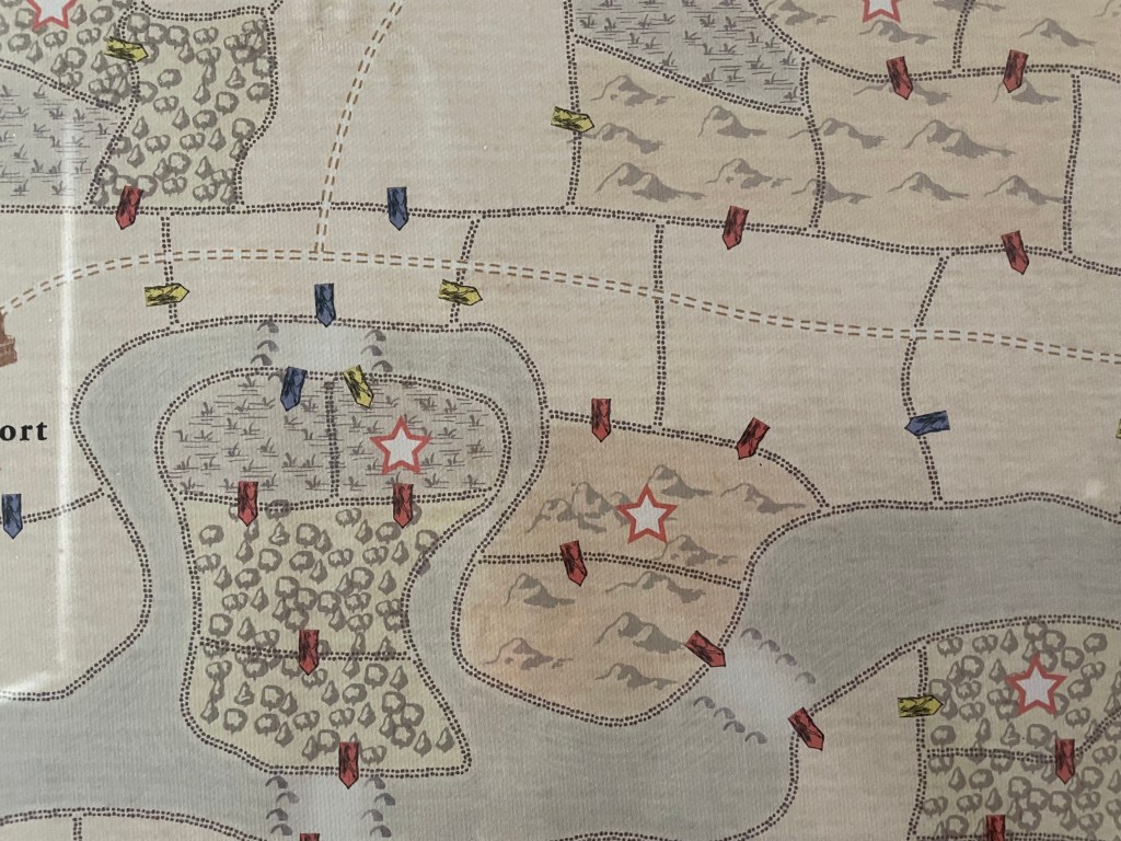 When I first looked over the board, I was a bit confused by all of the different colored arrows that appear. But, after reading the rules, and then seeing how the Blight uses them, it actually made a lot of sense and was easily adjudicated once we got used to the concepts. The Red Blight forces always operate as a Bot and is controlled by the game regardless of player count. The way that works revolves around the use of Blight Activation Cards and the associated multi-colored Blight Movement Arrows found printed directly on the map. Each time the Red Blight activates, the players will draw an Activation Card and simply follow its instructions. This could lead to the spawning of new Red Blight units on the board, the movement of certain types of units, Red Blight units conducting an attack if there are targets or an Event. The Red Blight units when ordered to move will follow the Red Blight Movement Arrows printed on the map. This will generally lead them south, towards the bottom of the map and towards potential trouble for the House players. The Red Blight will generally score Terror Points for each of their units that move off the south edge of the map and the more powerful the unit is means the more Terror Points that will be scored. Sometimes, the players will lose if any units get off the map but those situations are typically only found in the shorter scenarios. The Blight Movement Arrows will dictate an adjacent area for the units to move to. In some of these cases, there will be two arrows available in the space they are leaving and this is referred to as a Forked Area. The exact path taken will depend on the Forked Area Direction indicator found at the top of the map, which will be either odd or even as established at the start of a turn. And each game turn, the Red Blight units will be preferring different paths. This order makes the game somewhat predictable but does allow the players to plan ahead a bit. I would shudder to think about a totally random movement option but that would most assuredly ratchet up the tension.