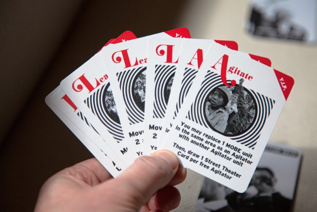 But peppered throughout the deck are also counterrevolutionary cards, representing internal tensions, government moles, and other obstacles to effective organizing. These cards deplete and remove Agitators from the Demonstrator ranks.