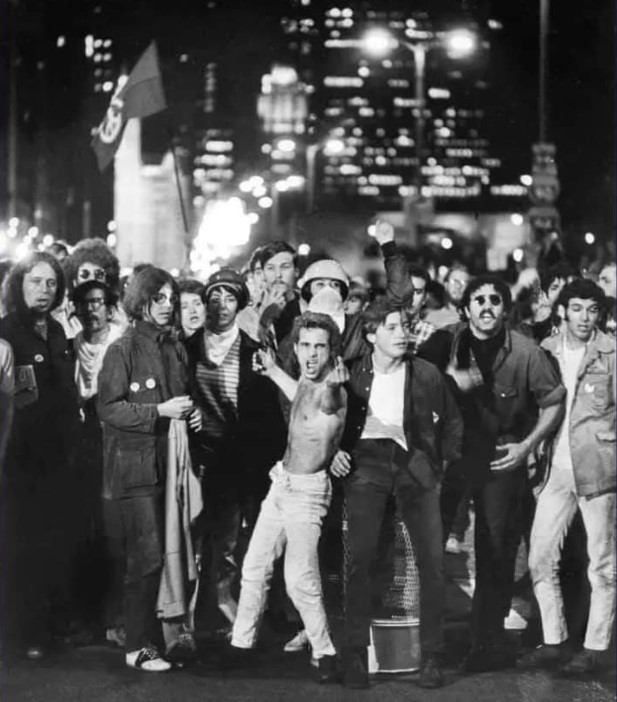 Yoni: The Yippies in particular believed in the spectacle of public turmoil as a revolutionary platform. They understood that they were powerless against Police actions and the National Guard and so performed symbolic resistance by “soaking up” the violence for all the world to see. As Abbey Hoffman would observe in situ, this is theater, deadly theater, and both sides are playing their roles. Hoffman would compare the Yippie struggles against the Chicago establishment to the American colonial revolt against the British Empire.