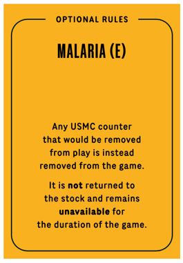 There is a hard limit to the number of USMC counters available to the player. This Malaria card adds a further restriction because the stock is never replenished. This emulates the debilitating effects of malaria and simulates the dwindling number of combat effective troops that can be sent to the front line.
