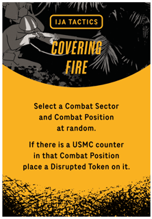 This Tactics Card affects the Marines in the firing line. A Marine with a Disrupted Token must either Recover or be targeted by the Command action to remove the Disrupted Token. This means that in the upcoming USMC Counter Phase, that counter will not be able to Move or take any other Action. In addition, at different points in the game a counter that is Disrupted suffers further penalties. For example, a Disrupted counter cannot use Defensive Fire against an IJA counter that is making the final surge against Henderson Field moving from the foremost Attack Position into the defending Combat Position. A Medic that is Disrupted cannot use the First Aid action. Again, the card forces the player to react to different battlefield conditions until he ‘learns’ the deck and becomes more proactive in anticipating what may happen next and takes measures accordingly.