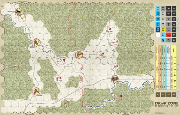 Dan: The game title is an homage to the excellent military history books Dropzone Normandy by Crookenden and Drop Zone Sicily by Breuer. This game covers the little-known but highly successful airborne operation in support of the DRAGOON invasion, hence the title “Southern France.” In the future, I may design a series of airborne games using the same Drop Zone system: Sicily, Normandy, Holland, etc. And I plan to use the title for a book on this campaign, if I ever complete it.