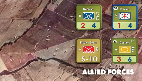 Dan: The Allied player receives a number of Reinforcement Points (RP’s) as specified on the Turn Record Track (from 1 to 4 RP’s per Command per Turn). RP’s are listed separately for the American 517th PRCT and the British 2nd Brigade Commands. Allied RP’s are used as follows: