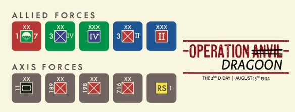 Dan: The map covers an area of Southern France 300 km (180 miles) by 200 km (120 miles). The units are Corps (minus) and Division level in size. There are 15 daily turns, from D-Day (15 August 1944) to D+14 (29 August).